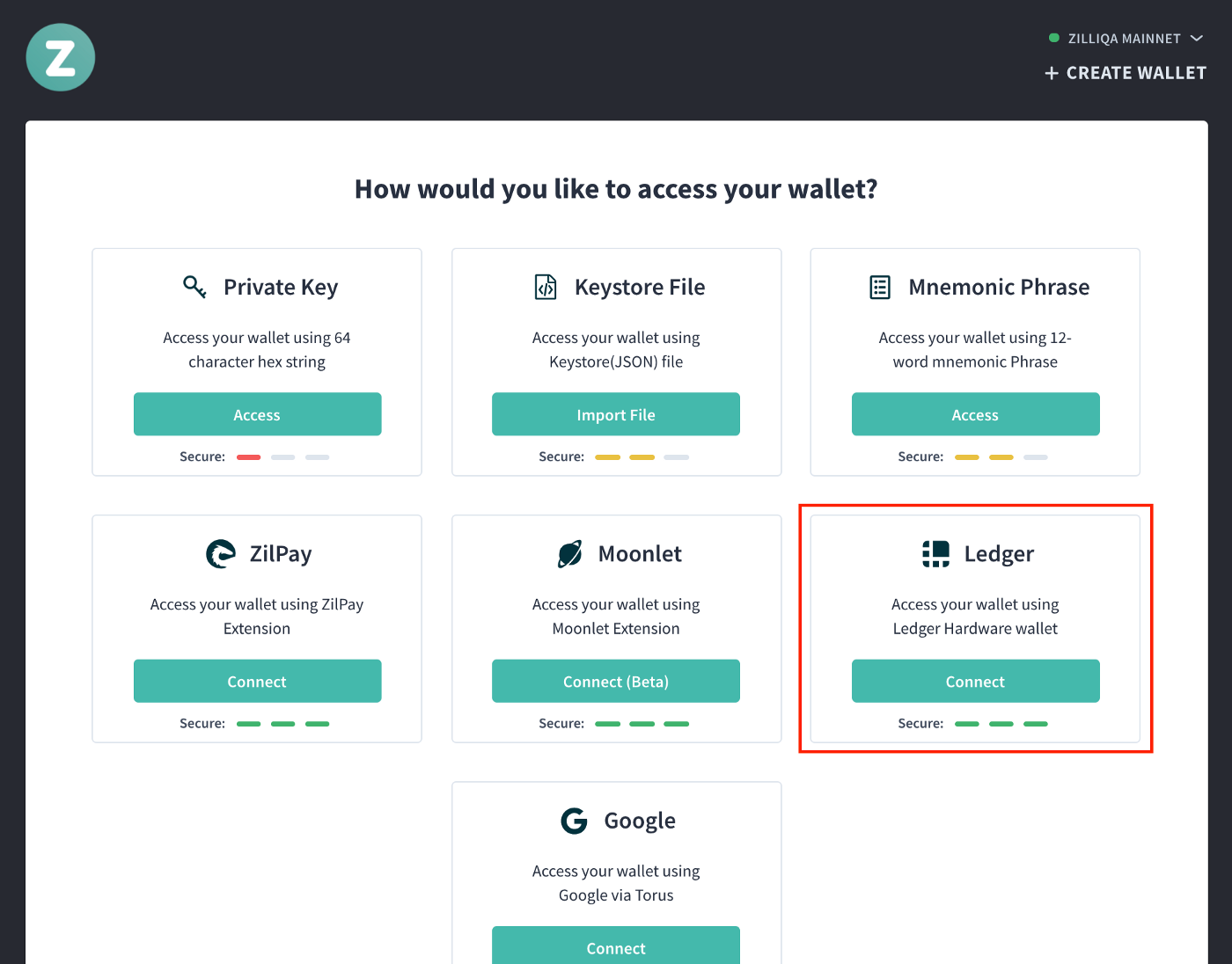 The Ledger hardware wallet range is reputed for its airtight security, elegant user design and privacy. Combined with the Ledger Live Mobile app with Bluetooth, it is one of our highly recommended platforms to secure, buy or manage over 1500 tokens at the touch of a button — including Zilliqa!