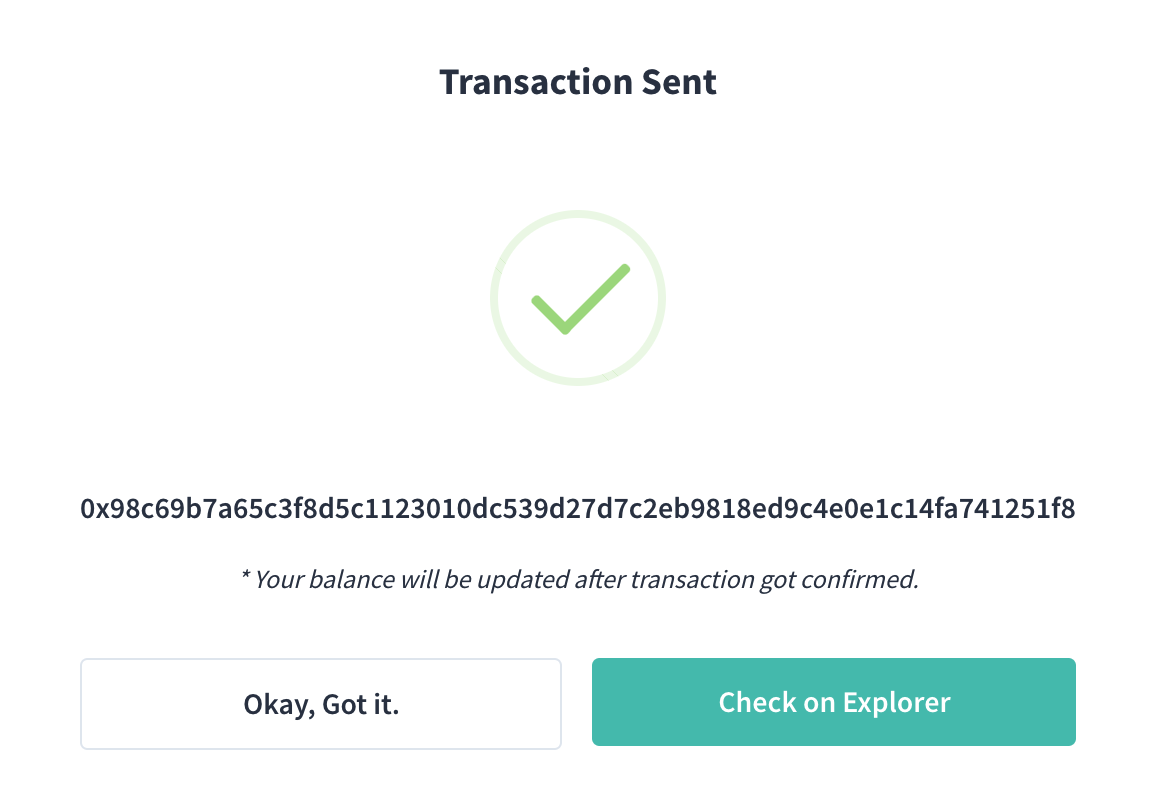 - Now that your transaction to the Zilliqa mainnet has been authorised and broadcasted, simply wait for the transaction to be included in the next block and it will be confirmed; 🎉