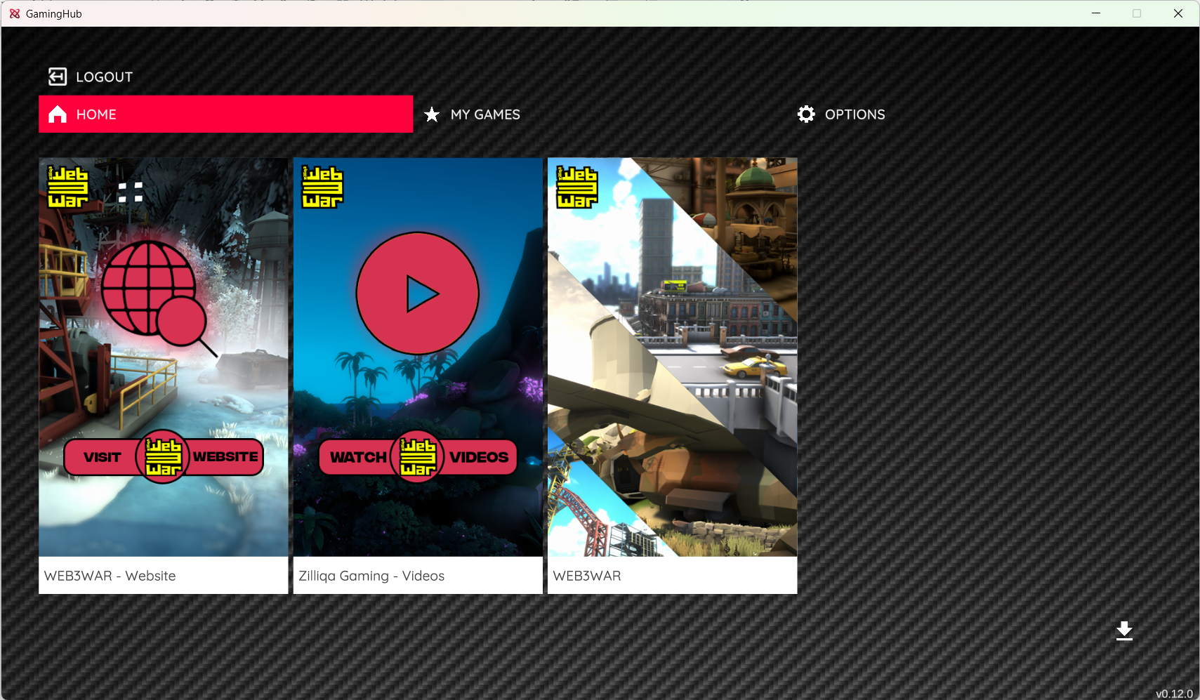After logging in, you will be presented with the launcher interface, which lists supported Web3 games. Select WEB3WAR here and click on Install to install the game on your PC.