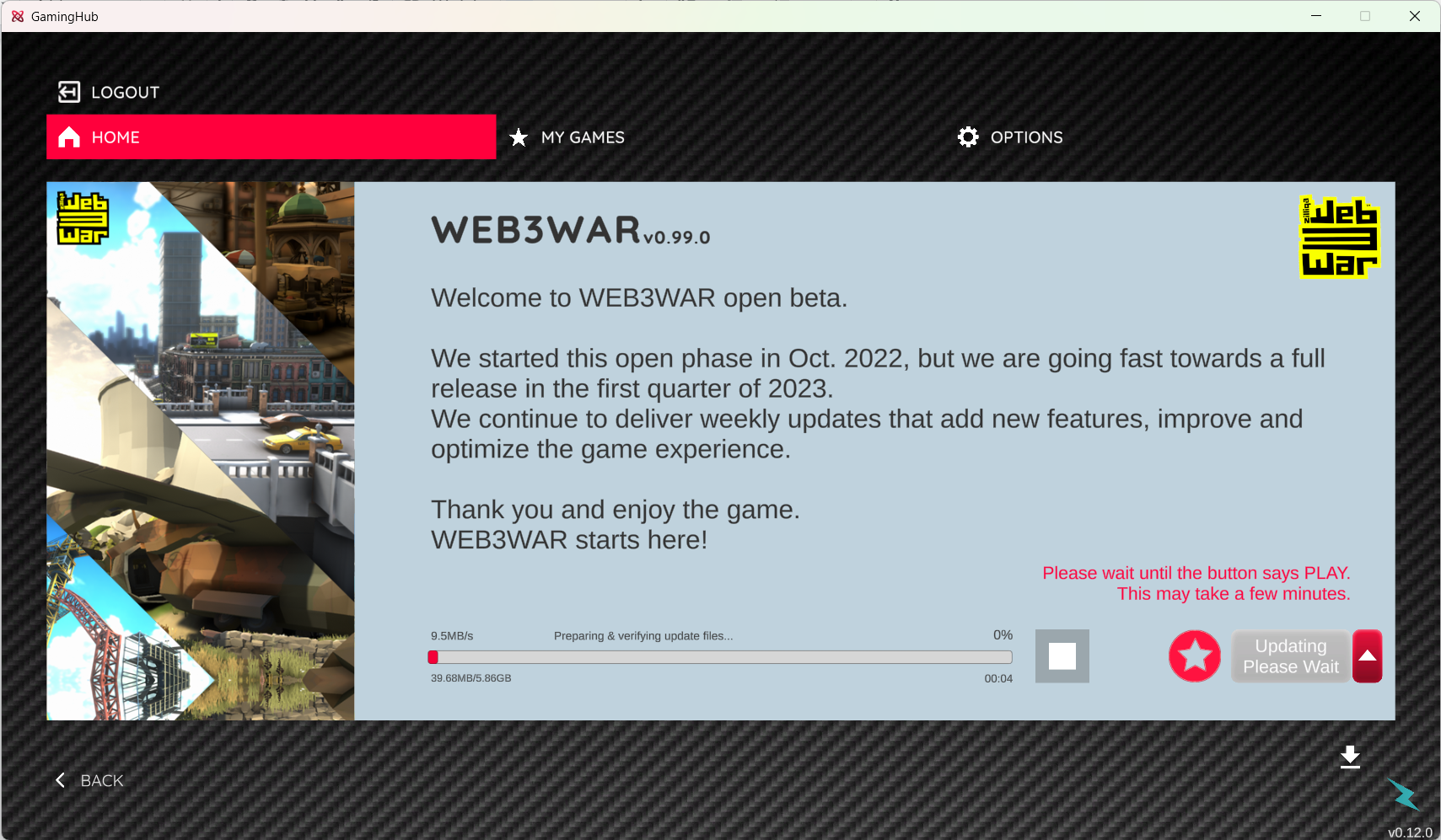 This button will change to Play once the game has been downloaded. Click the Play button to fire up WEB3WAR and start playing!