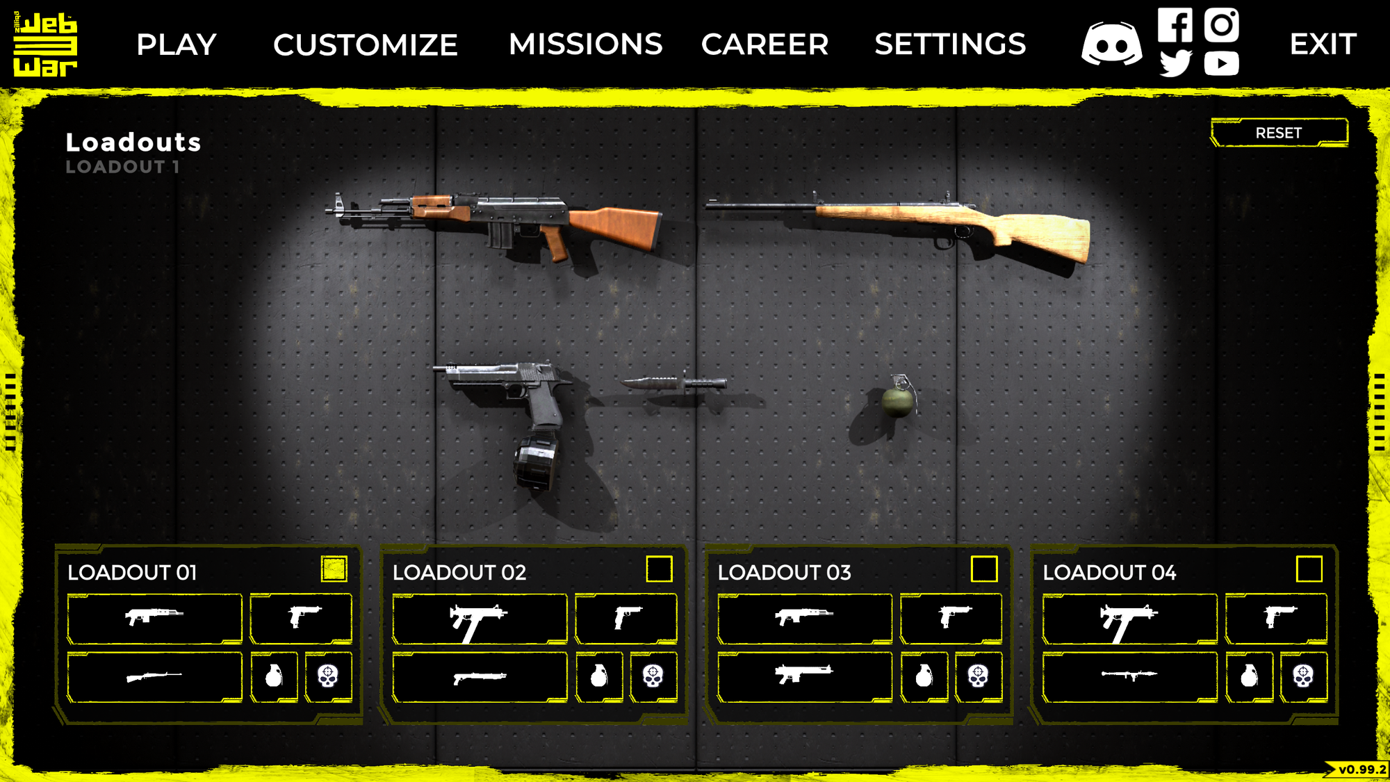 Click on Customize and Loadout to customise the four default loadouts with different weapons that complement your play style.