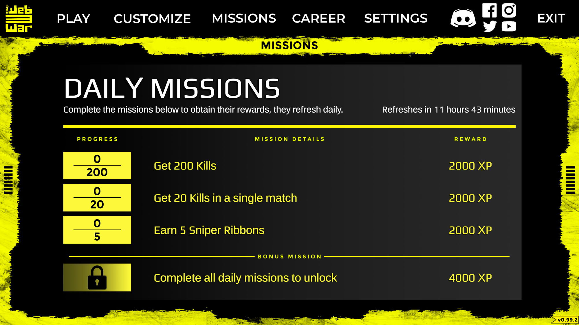 Navigate to the Missions menu to view your current daily and weekly missions, each of which rewards bonus experience when completed.