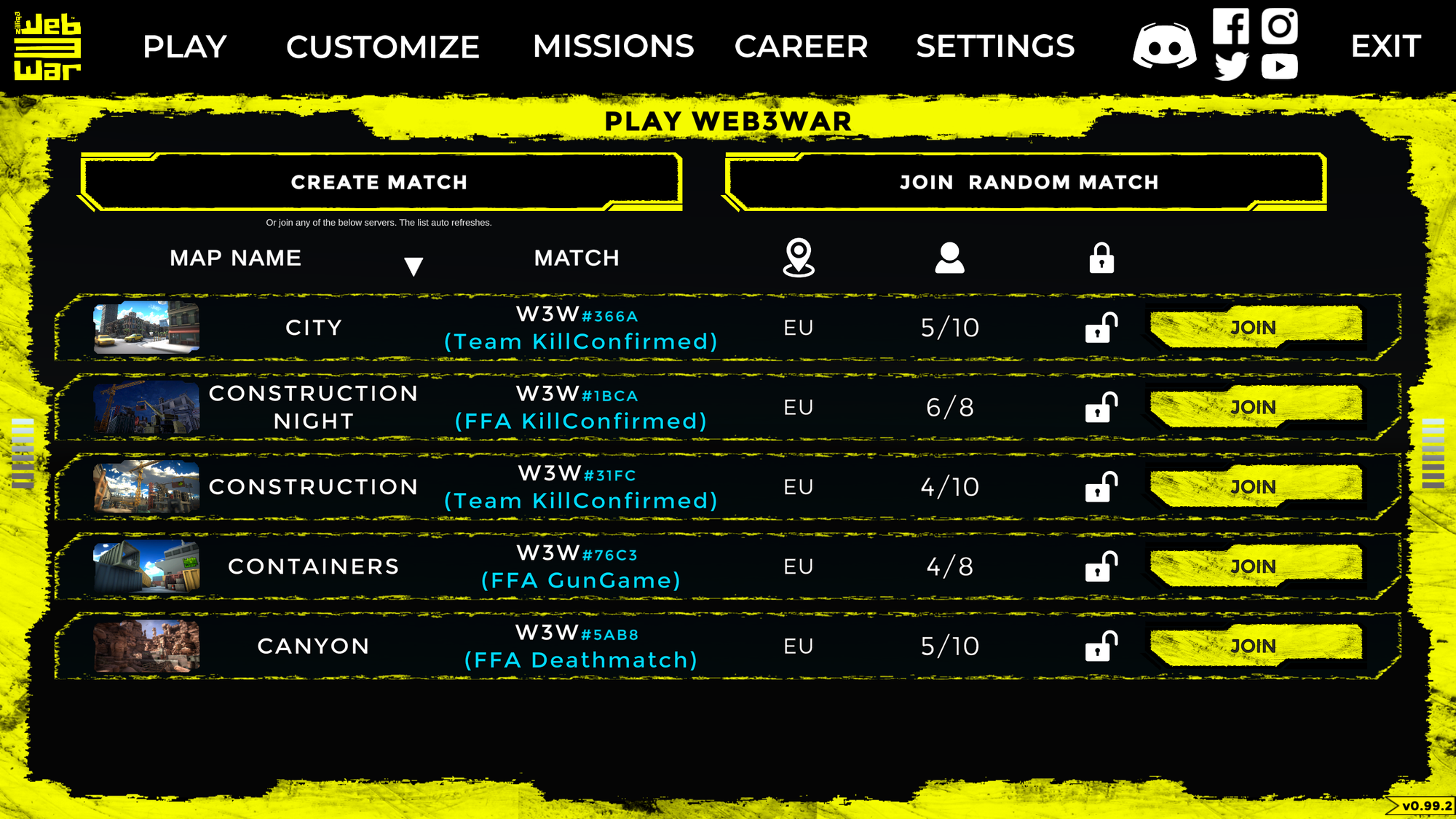 Select an open match or click Join Random Match to join a public game and dive right into the action.