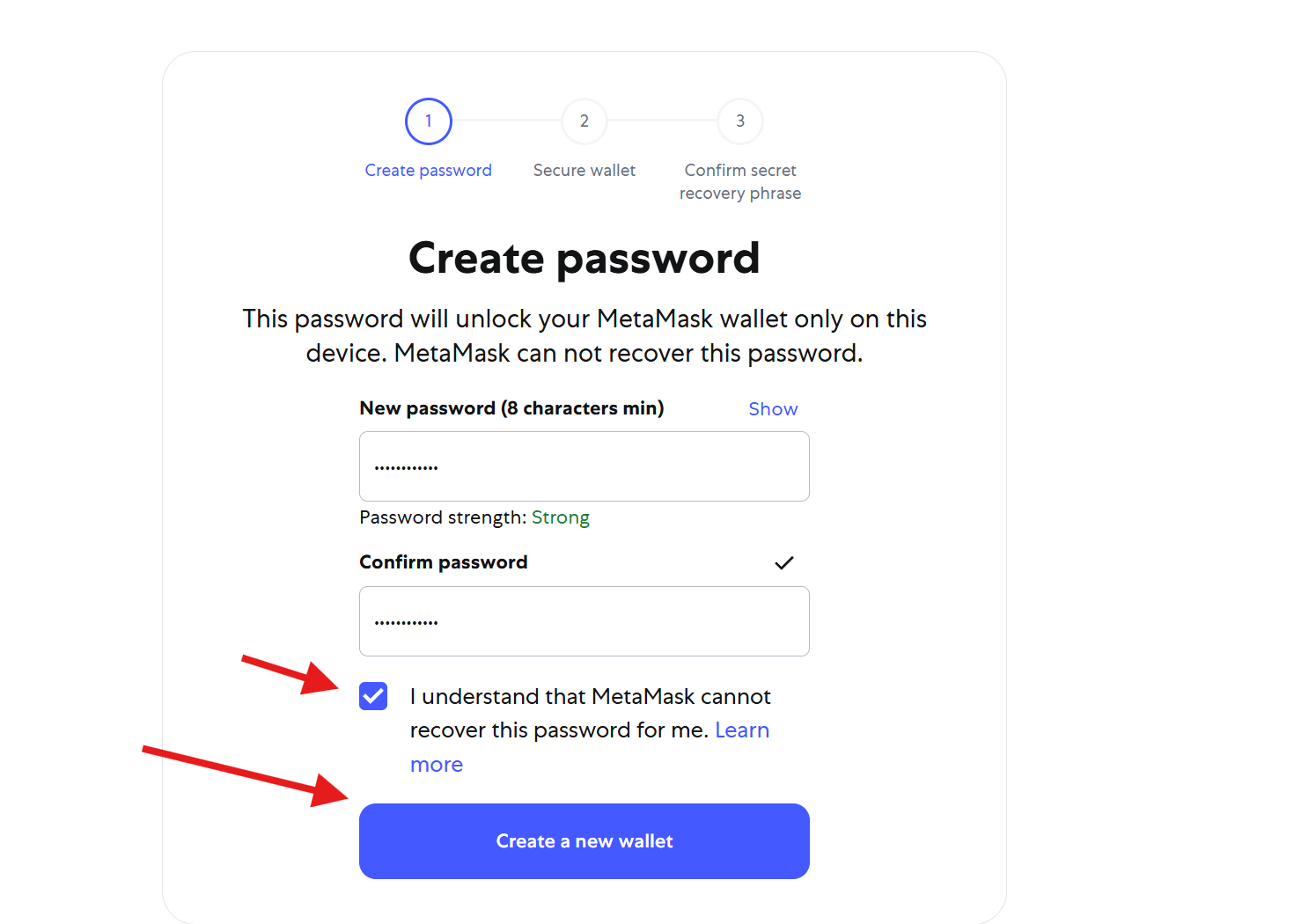 - Agree to the Terms and Conditions, then click “Create a new wallet”.