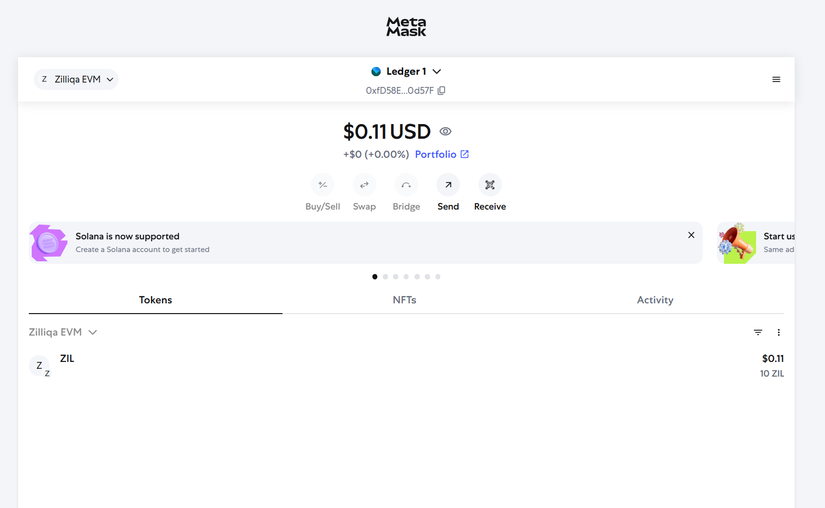 - Congratulations, Your Ledger is now successfully connected to Metamask and you have also added Zilliqa EVM network.