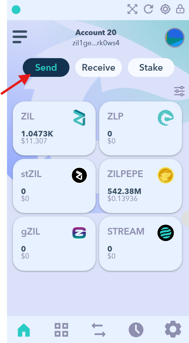 - Open your ZilPay wallet and click "Send".