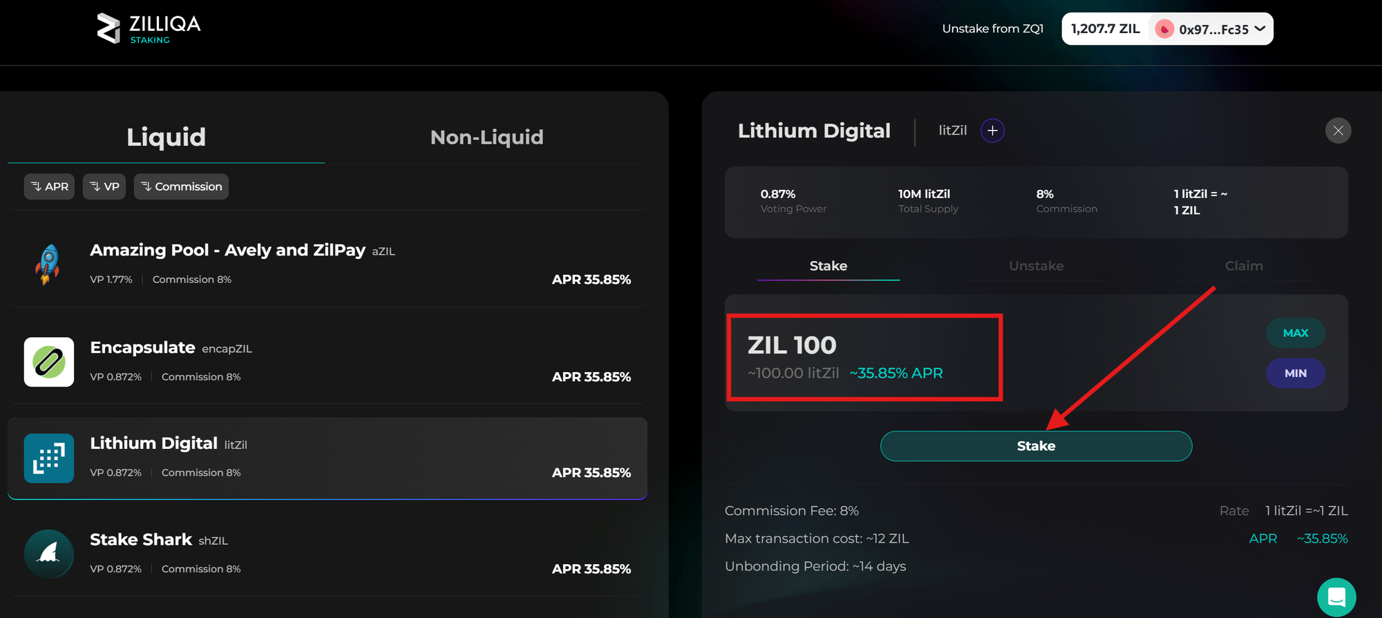 - Congratulations! You have successfully staked your ZIL and are now earning staking rewards.