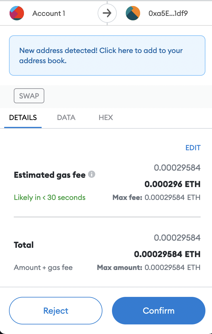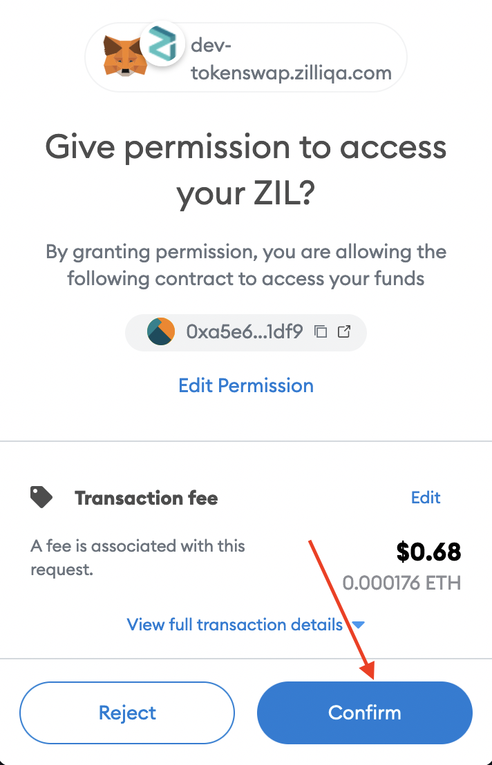 6. You will have to confirm this transaction on your Metamask extension. This will require paying gas in ETH.