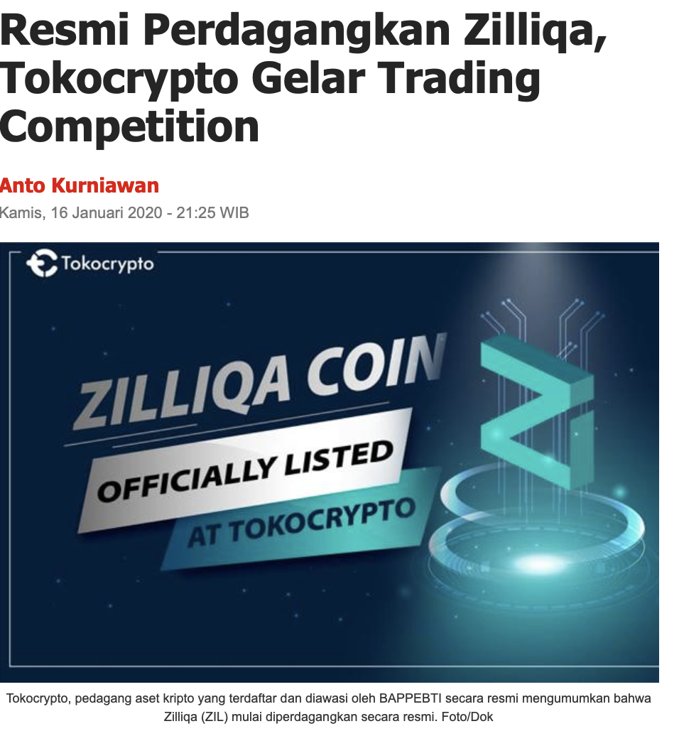 As one of Southeast Asia’s established enterprise-grade blockchain platforms, the listing on Tokocrypto comes at an excellent time as Zilliqa aims to further engage with the region’s users and help drive its crypto ecosystem forward. Tokocrypto recently ran a trading contest for all its registered users, rewarding them with a total of Rp25 million!