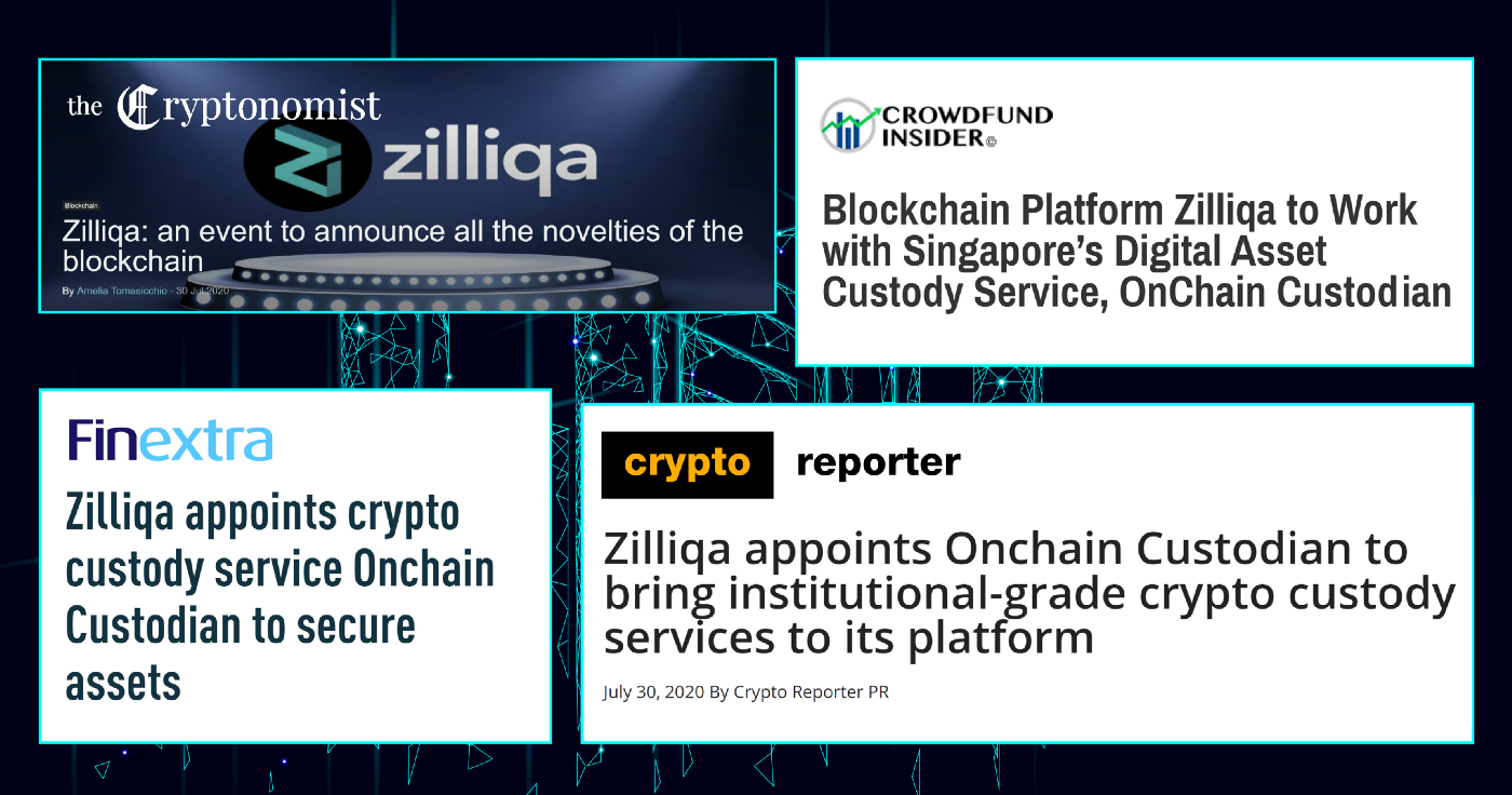 - We are delighted to announce that we are working with Onchain Custodian to secure our network and ecosystem assets. Onchain will lend its institutional-grade security and insured custody services to digital assets built on Zilliqa such as ZIL and ZRC-2 tokens. They will start by bringing greater security to the XSGD, a Singapore dollar-backed stablecoin launched in collaboration with Xfers, the leading fintech payments platform for digital businesses. This news was covered across significant crypto publications such as Finextra, CrowdFund Insider, Crypto Reporter — to name a few.